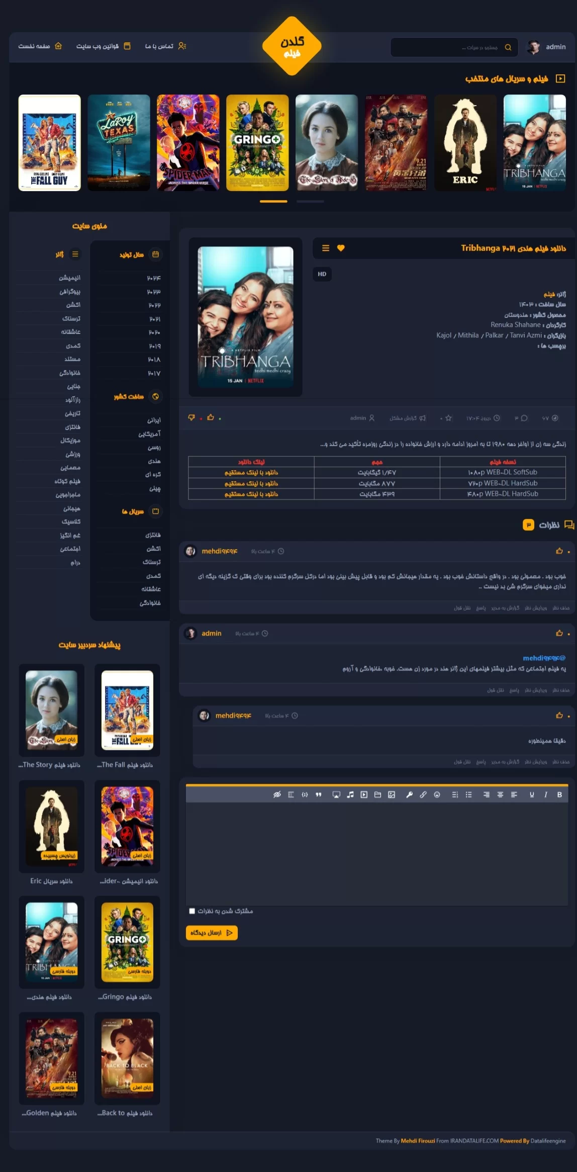 گلدن فیلم ، قالبی شیک و پر کاربرد جهت اجرای وب سایت های دانلود فیلم وسریال که به راحتی میتونین از آن استفاده و بهره ببرید. هم اکنون این قالب بسیار زیبا و کاربردی به صورت کاملا رایگان از ایران دیتالایف منتشر میشود و میتوانید در وبسایت های دیتالایفی خود از آن استفاده کنید.