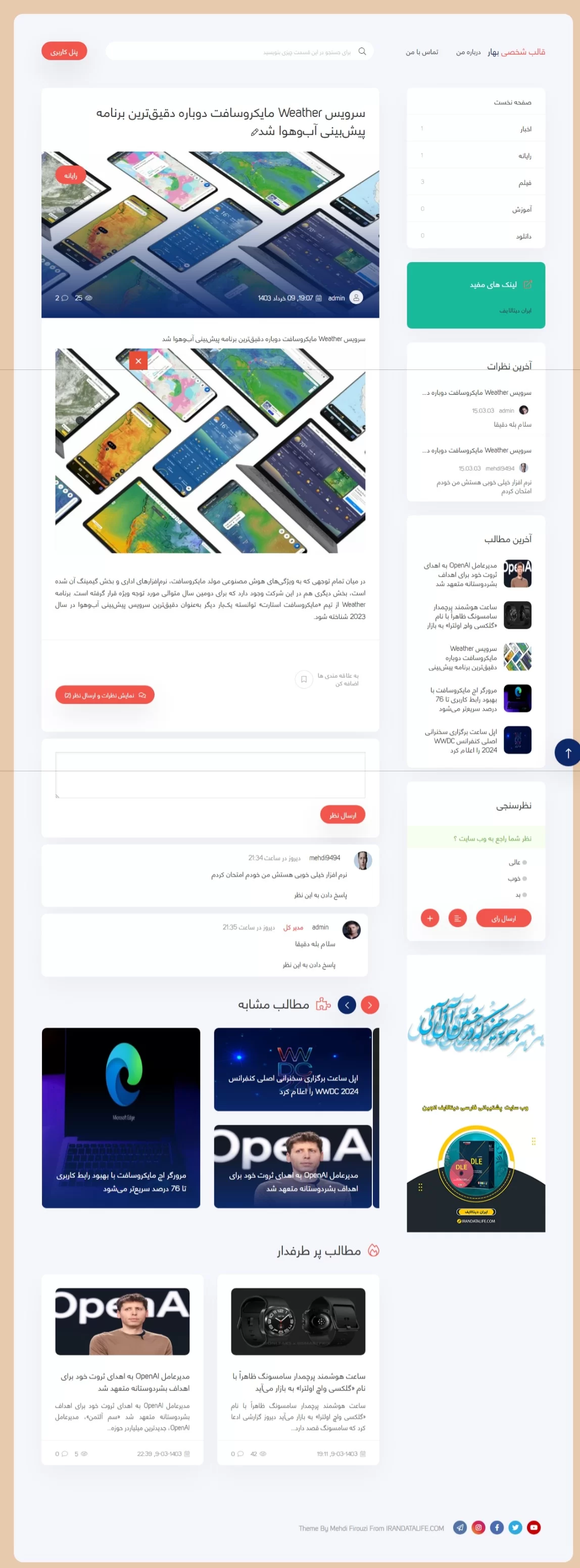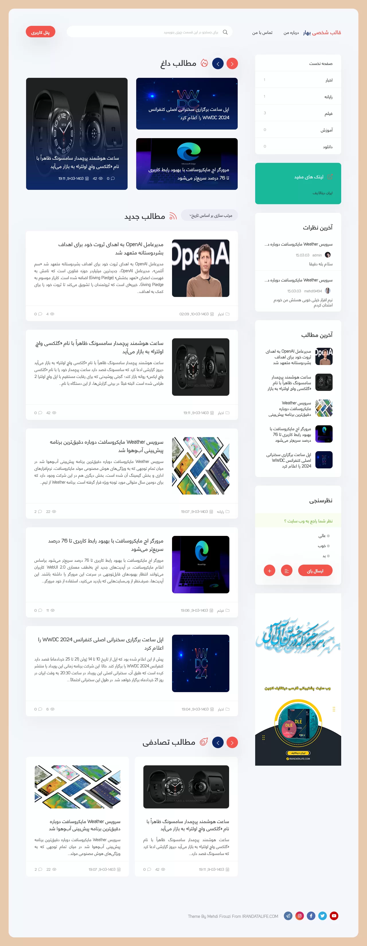 بهار ، قالبی شیک و پر کاربرد جهت اجرای وب سایت های شخصی،آموزشی،خبری و... که به راحتی میتونین از آن استفاده و بهره ببرید. هم اکنون این قالب بسیار زیبا و کاربردی به صورت کاملا رایگان از ایران دیتالایف منتشر میشود و میتوانید در وبسایت های دیتالایفی خود از آن استفاده کنید.