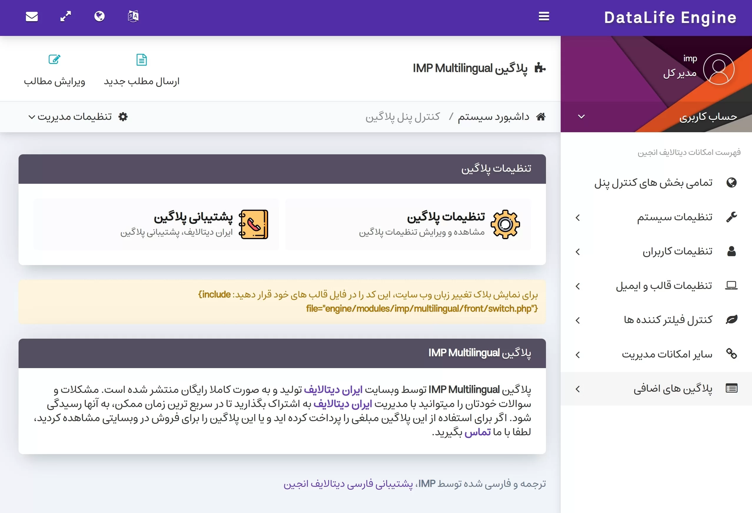 پلاگین چندزبانه ایران دیتالایف یک پلاگین قدرتمند و کاربردی است که به مدیران وبسایتهای دیتالایف انجین این امکان را میدهد تا سایت خود را برای مخاطبان بینالمللی بهینهسازی کنند. با استفاده از این پلاگین، بازدیدکنندگان میتوانند به راحتی بین دو زبان مختلف جابجا شوند و تجربه کاربری بهتری داشته باشند. این پلاگین به صورت کاملاً خودکار عمل کرده و بدون نیاز به دانش فنی پیشرفته یا تغییرات پیچیده در ساختار سیستم، امکان مدیریت چندزبانه را فراهم میکند.